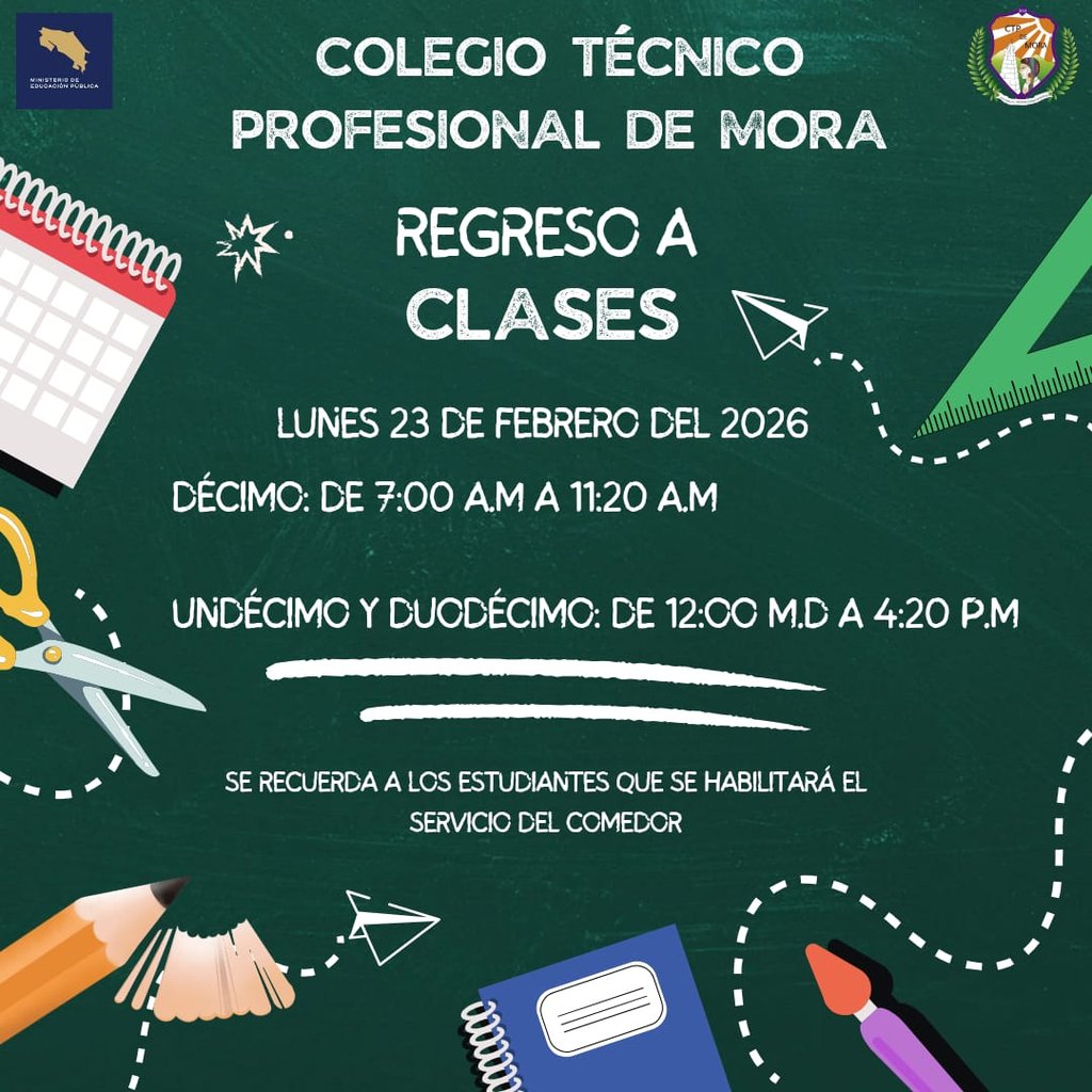 El Colegio Técnico Profesional de Mora nace de la necesidad y deseo de un sector del cantón de Mora por brindarle a los jóvenes de la localidad y circunvecinos una opción diferente de estudio que les permita no desplazarse a lugares como San José, Puriscal, Lindora en busca de horizontes educativos nuevos, innovadores, diferentes y de excelencia.